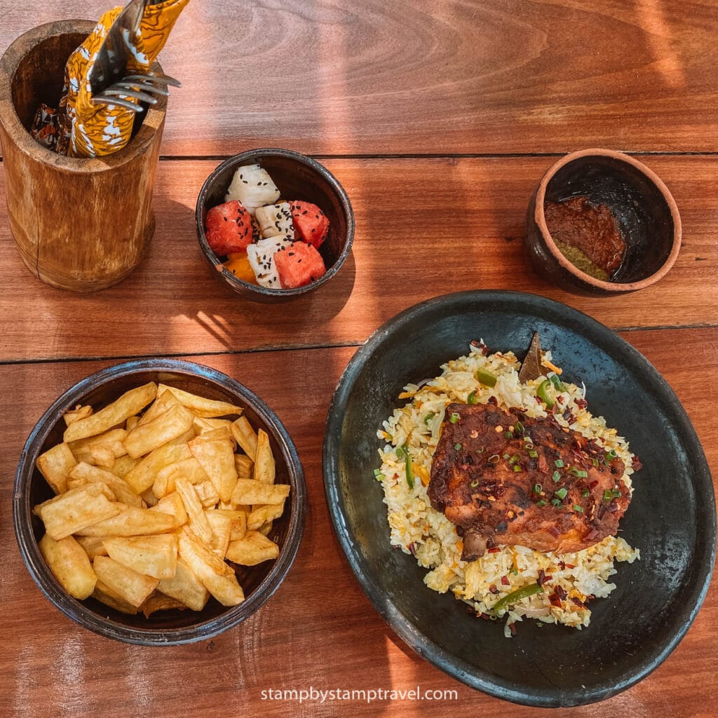 Llegados a este punto, ya solo queda una pregunta clave: ¿dónde probar la comida típica de Ghana? La mejor respuesta es que depende de la experiencia que busques. Si quieres algo auténtico, los puestos callejeros y los “chop bars” son la mejor opción. Es donde los ghaneses comen a diario y donde puedes encontrar platos como el Waakye o el Kelewele recién hechos y llenos de sabor.