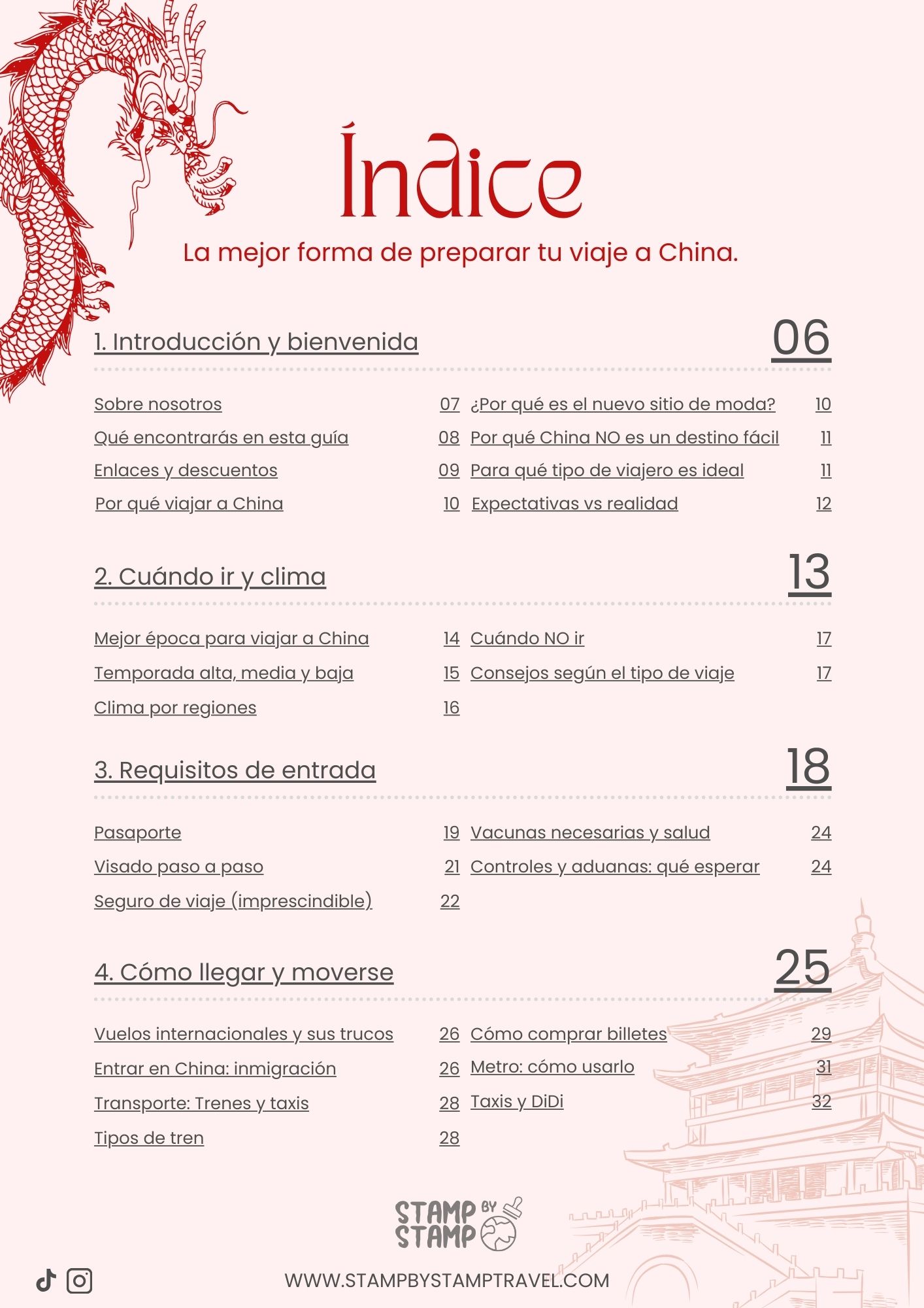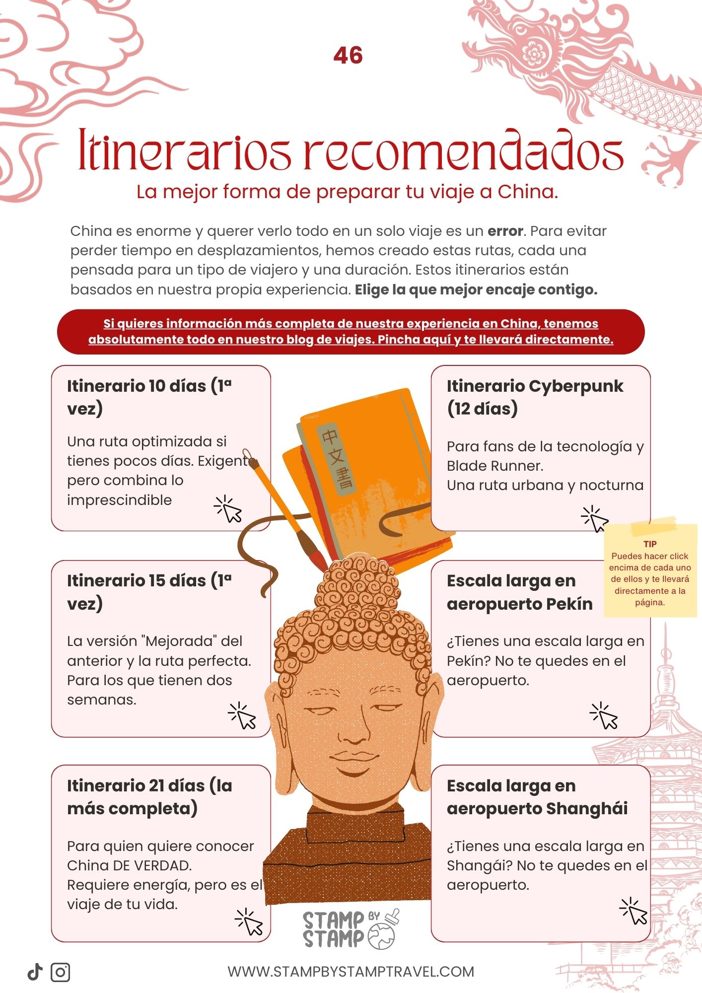 Una guía en formato digital (PDF descargable) pensada para acompañarte antes y durante tu viaje. Puedes verla desde el móvil, imprimirla o llevarla en tu tablet. Es como esos amigos que ya se han “peleado” con China y te pasan su cuaderno con todos los trucos, las apps que funcionan de verdad y los errores que puedes evitar.